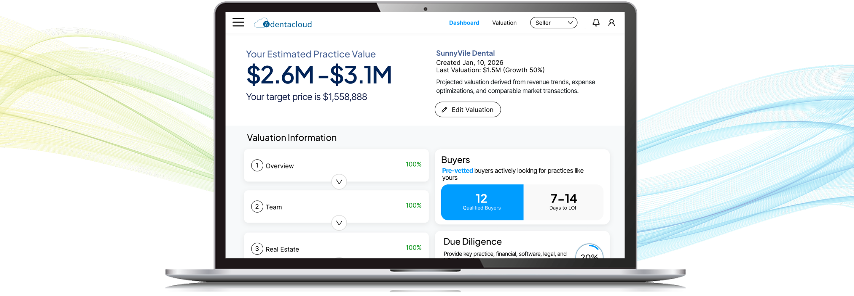 Built by dentists, for dentists. Dentacloud gives you clarity on your value, shows you all your options, and provides expert M&A advisors who help you choose the path that's right for you.
